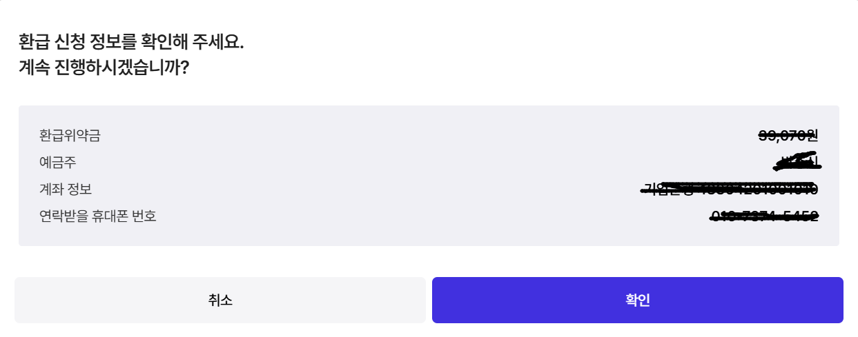 마지막으로 환급 정보를 확인하신 후 확인 버튼을 최종 신청이 완료됩니다.