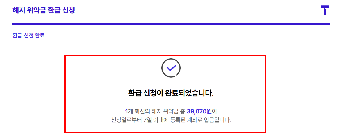 - 환급액: 납부한 위약금 전액을 환급합니다.